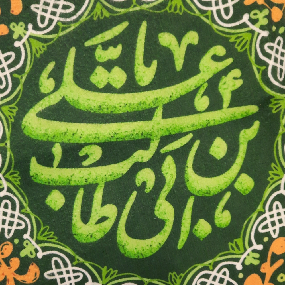 - کتیبه پاناما یا امیرالمومنین یا علی بن ابیطالب با زمینه سبز
