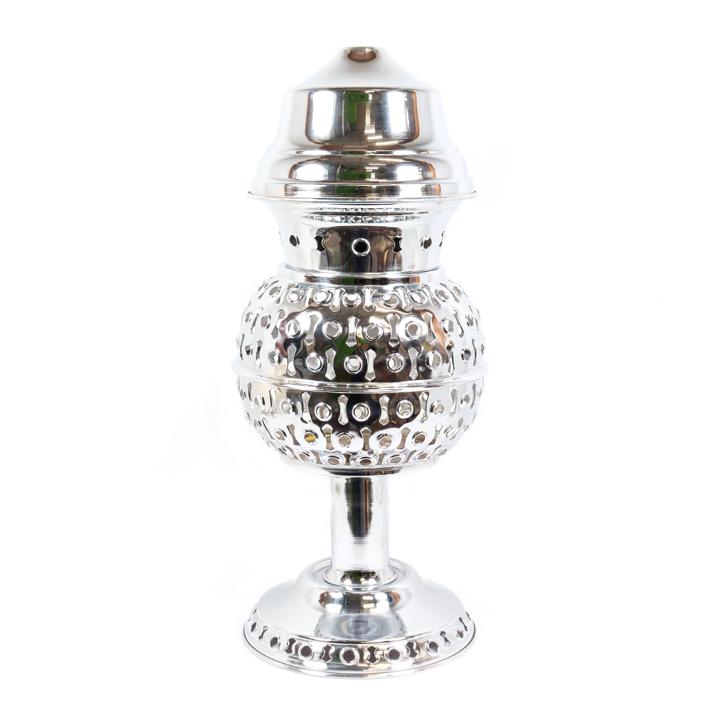 اسپند دود کن حضرتی جنس برنج رنگ کرومی ارتفاع 44 سانتی متر کد 0412