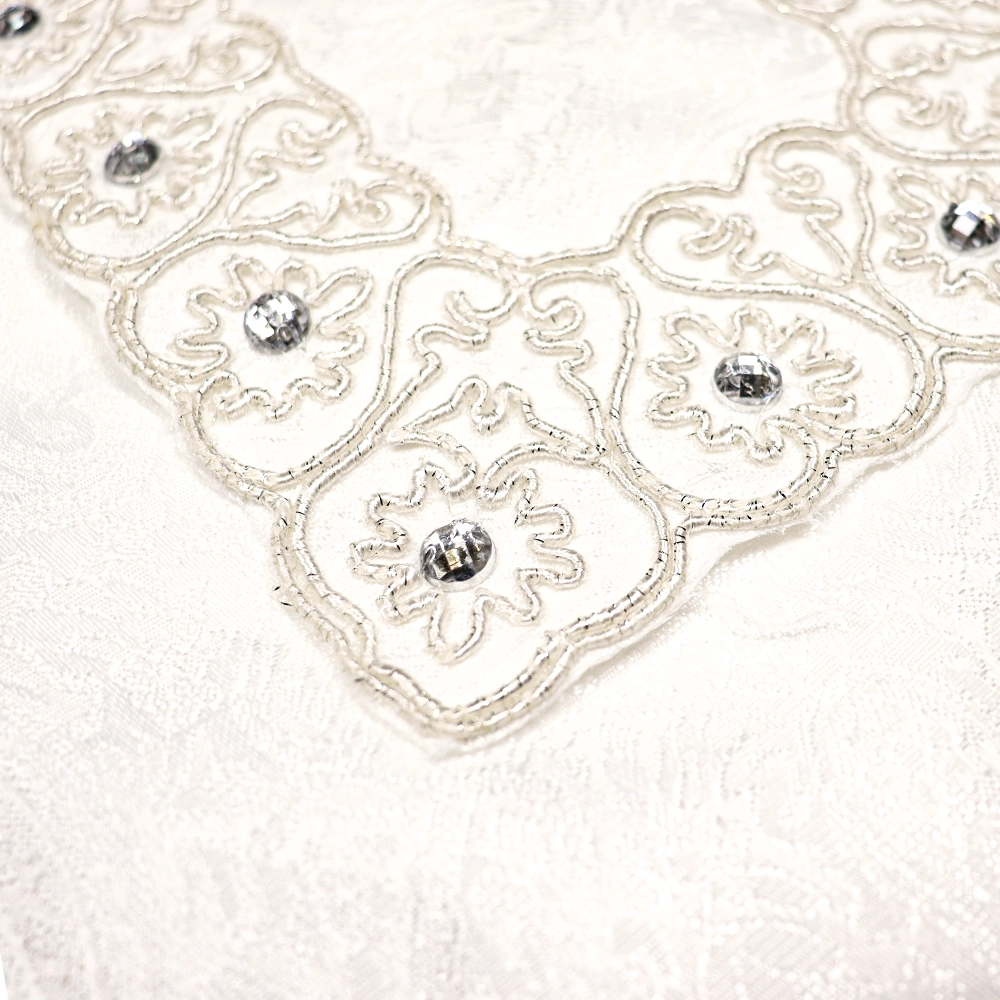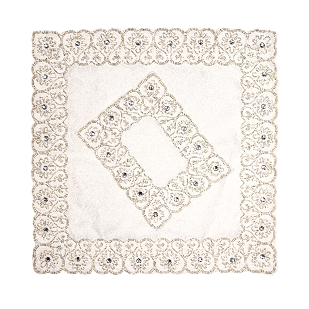 جانماز شکوه دوتیکه نگین دار سایز بزرگ رنگ سفید 36*36 کد 0353