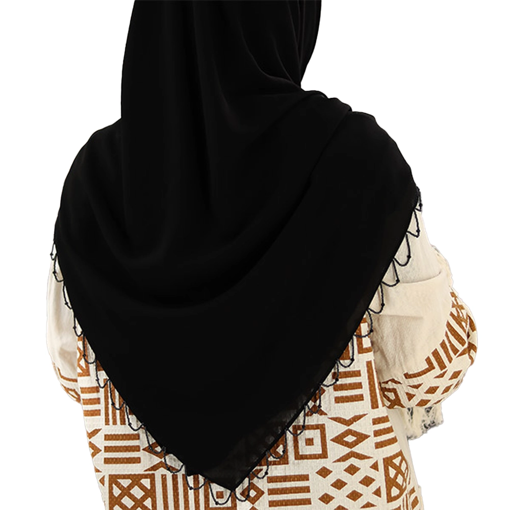 روسری جواهر دوزی 130 حریر شیفون مشکی طرح 1 کد 3208