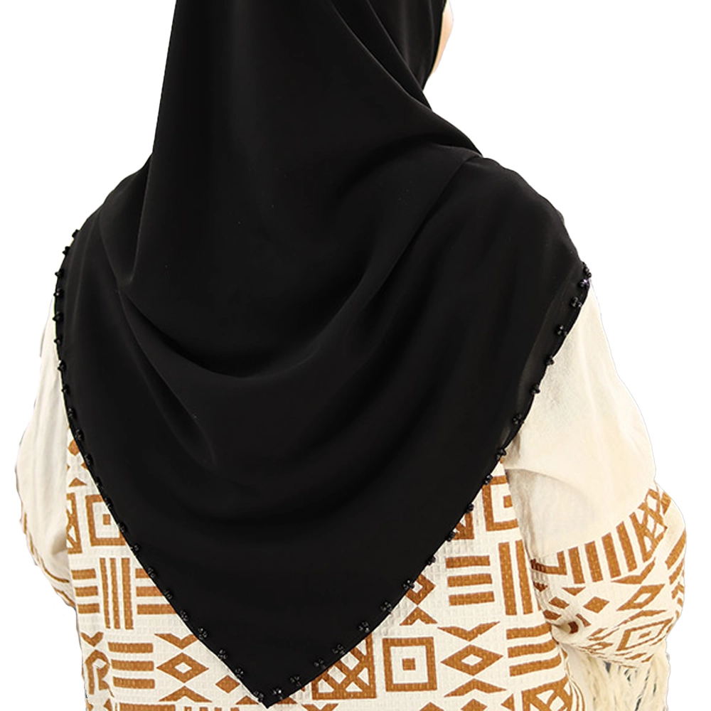 روسری جواهر دوزی 130 حریر شیفون مشکی طرح 4 کد 3217