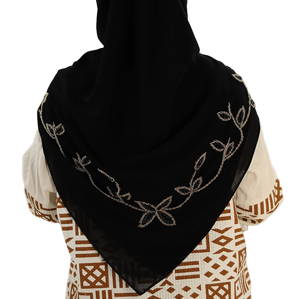 روسری جواهردوزی 130 حریر شیفون مشکی طرح 4