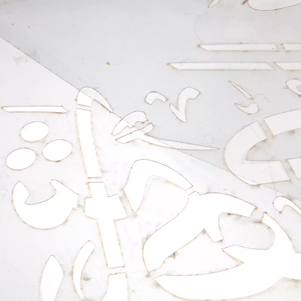 جهت پیاده سازی طرح ابتدا محل مورد نظر را تمیز کرده سپس شابلون را قرار داده و با ابر و رنگ پلاستیک قسمت های خالی را با رنگ پر کرده و سپس شابلون را بردارید.