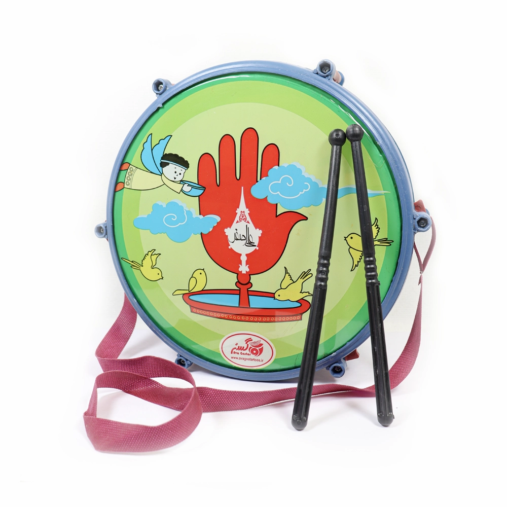 • نصب بند یا دستگیره: ابتدا بند یا دستگیره طبل را روی شانه یا دست کودک نصب کنید تا کودک بتواند به راحتی طبل را حمل کند.