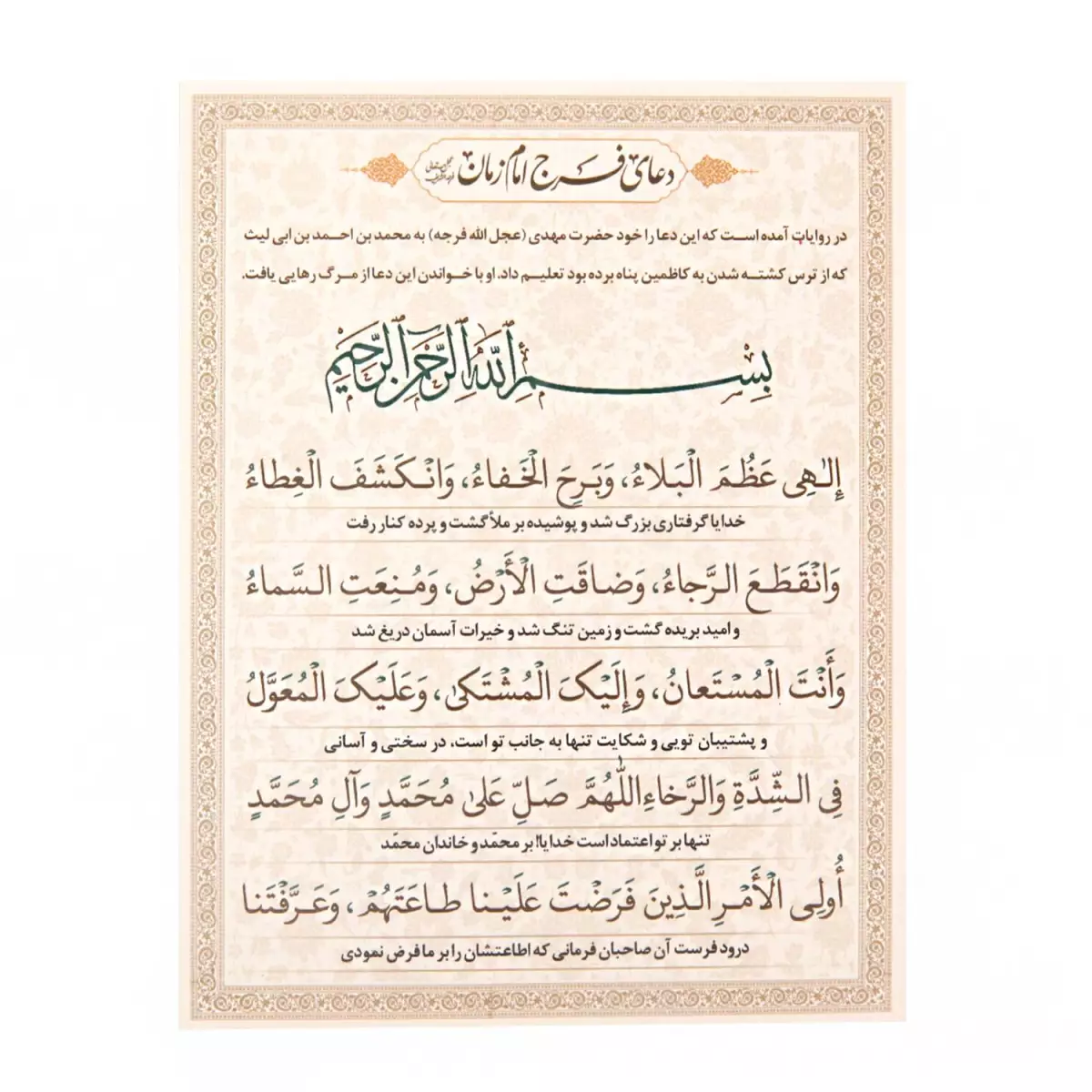 کارت دعای فرج امام زمان علیه السلام کد 0856