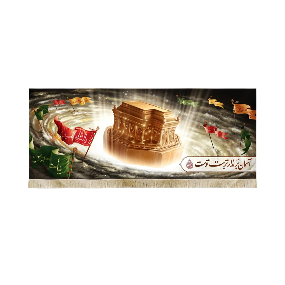 این کتیبه زیبا و منحصر به فرد با عنوان “آسمان بر مدار تربت توست” با الهام از مفاهیم مذهبی عمیق طراحی شده است. جنس این کتیبه از پارچه مخمل با کیفیت بالا بوده و دارای ابعاد مختلفی است که آن را به انتخابی مناسب برای نصب در مجالس مذهبی، مساجد، حسینیهها و منازل میکند.