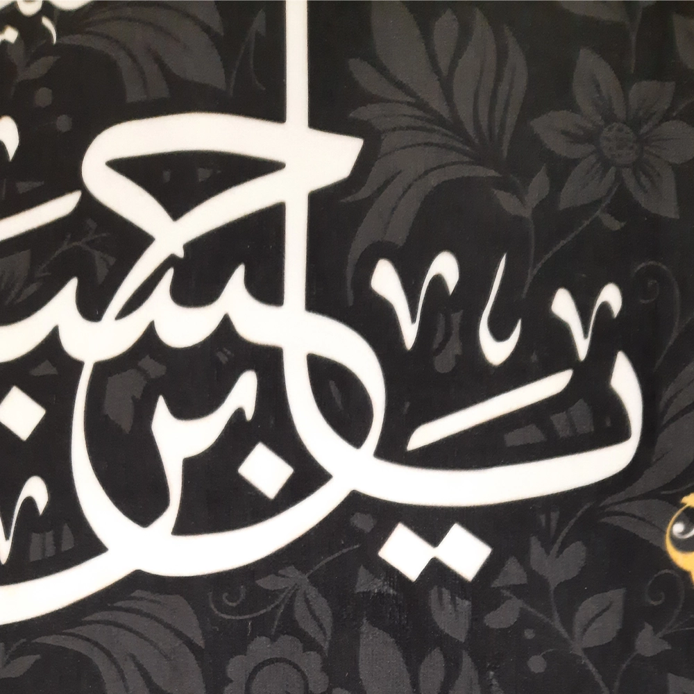 • جنس با کیفیت: کتیبه از پارچه مخمل با کیفیت بالا تهیه شده است که علاوه بر دوام و مقاومت در برابر سایش، به آن زیبایی و لطافت خاصی می‌بخشد.