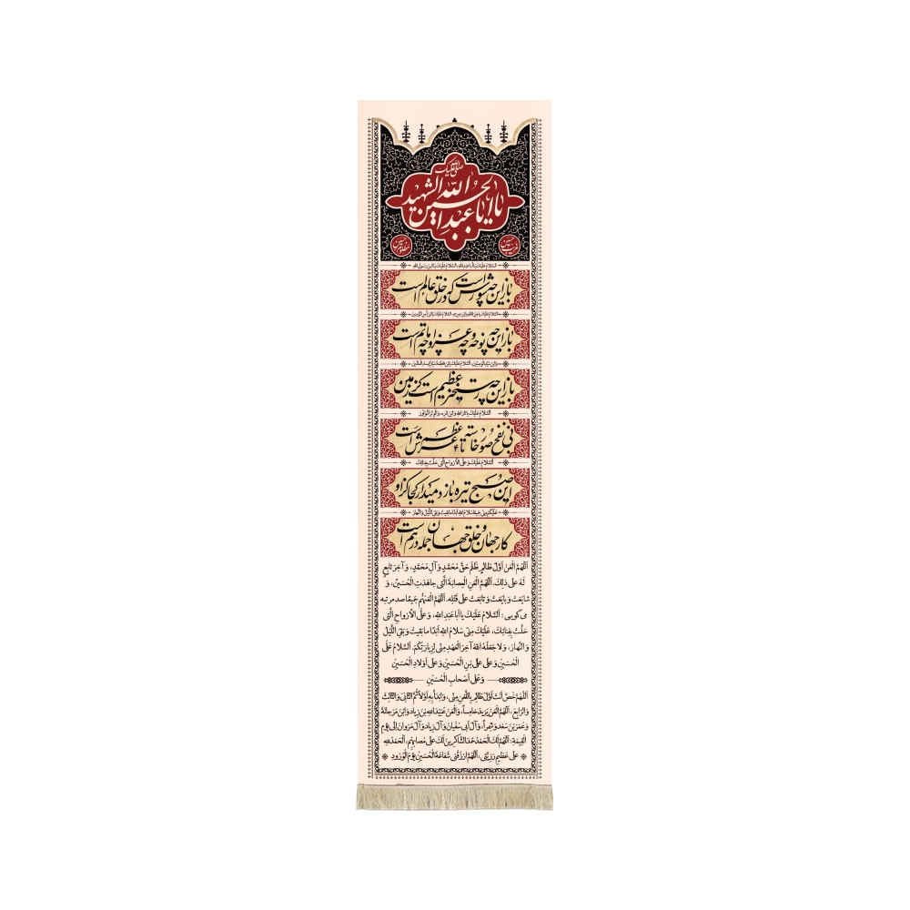 کاربردهای متنوع: این کتیبه مذهبی میتواند در مجالس و مراسم عزاداری، هیئتها، مساجد، حسینیهها، و حتی منازل مورد استفاده قرار گیرد. نصب این کتیبه به عنوان نمادی از ارادت و عشق به امام حسین (علیه السلام)، فضای معنوی و روحانی خاصی به محیط میبخشد.