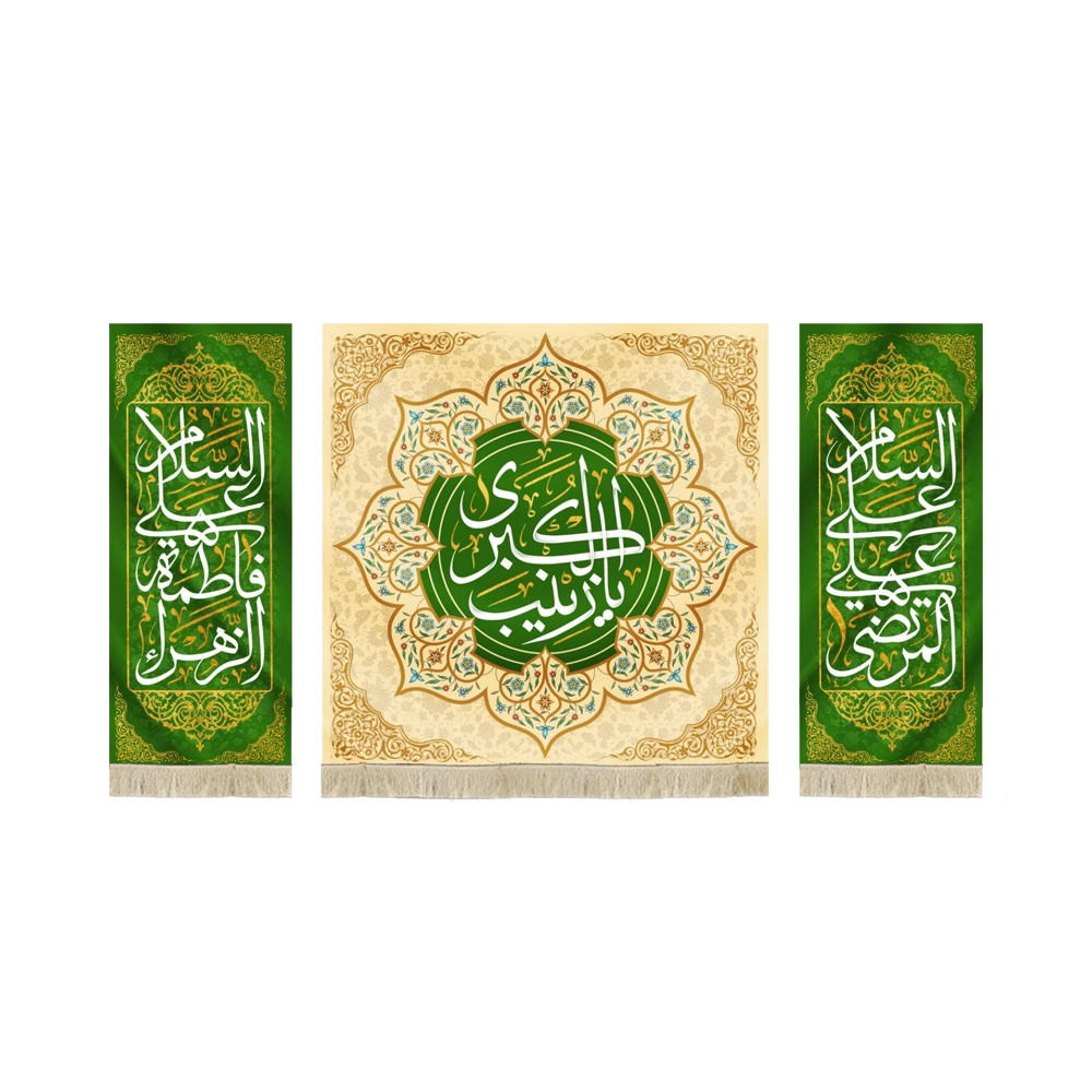 کتیبه مذهبی ست “یا زینب الکبری زمینه کرم و سبز