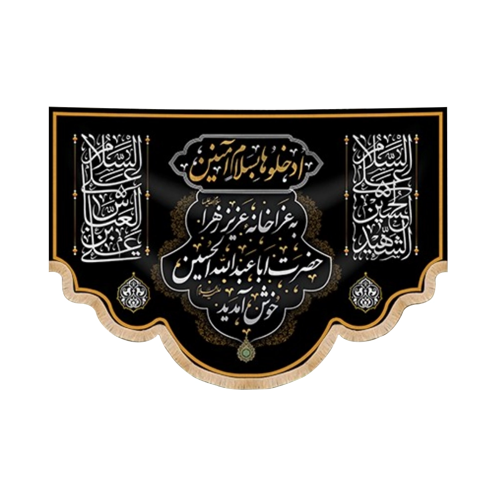 این کتیبه زیبا و منحصر به فرد با عنوان “به عزاخانه عزیز زهرا حضرت اباعبدالله الحسین خوش آمدید” با الهام از مفاهیم مذهبی عمیق طراحی شده است. جنس این کتیبه از پارچه مخمل با کیفیت بالا بوده و دارای ابعاد مختلفی است که آن را به انتخابی مناسب برای نصب در مجالس مذهبی، مساجد، حسینیهها و منازل میکند.