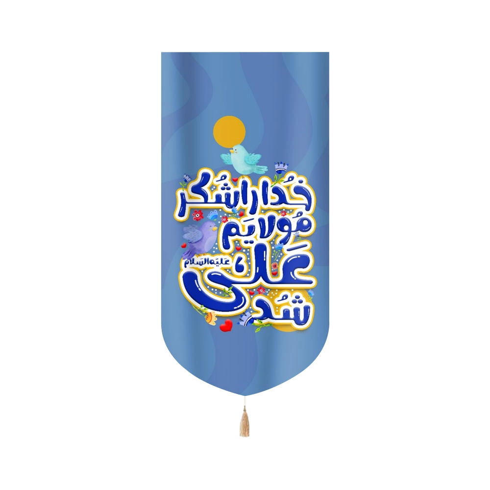 این کتیبه زیبا و منحصر به فرد با عنوان “خدا را شکر مولایم علی (علیه السلام) شد زمینه آبی“ با الهام از مفاهیم مذهبی عمیق طراحی شده است. جنس این کتیبه از پارچه مخمل با کیفیت بالا بوده و دارای ابعاد مختلفی است که آن را به انتخابی مناسب برای نصب در مجالس مذهبی، مساجد، حسینیهها و منازل میکند.