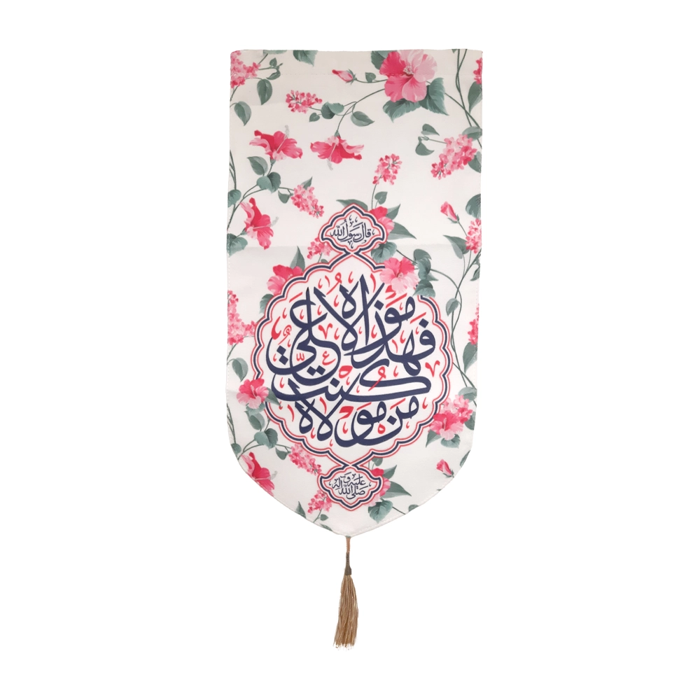 این کتیبه زیبا و منحصر به فرد با عنوان من کنت مولاه فهذا علی مولاه زمینه سفید با الهام از مفاهیم مذهبی عمیق طراحی شده است. جنس این کتیبه از پارچه مخمل با کیفیت بالا بوده و دارای ابعاد مختلفی است که آن را به انتخابی مناسب برای نصب در مجالس مذهبی، مساجد، حسینیه‌ها و منازل می‌کند.