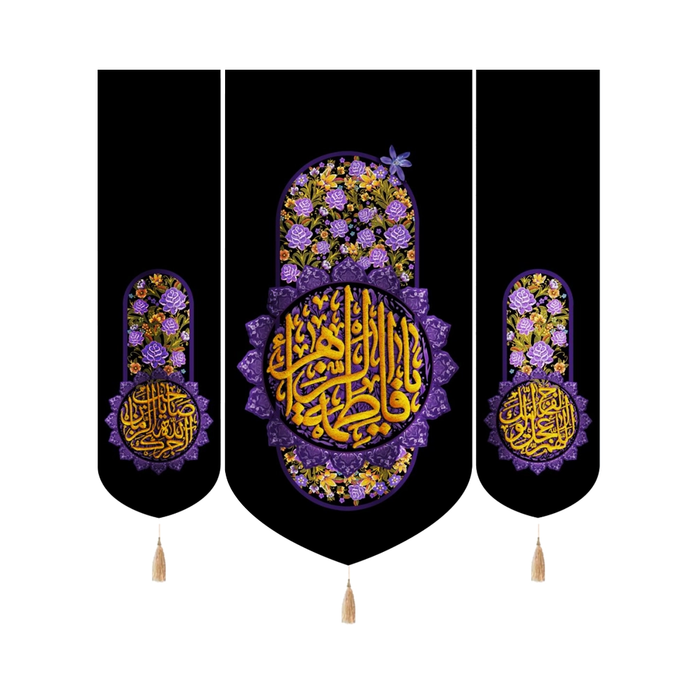 کتیبه فاطمیه ست مخمل یا فاطمه الزهرا طرح گل بنفش عمودی