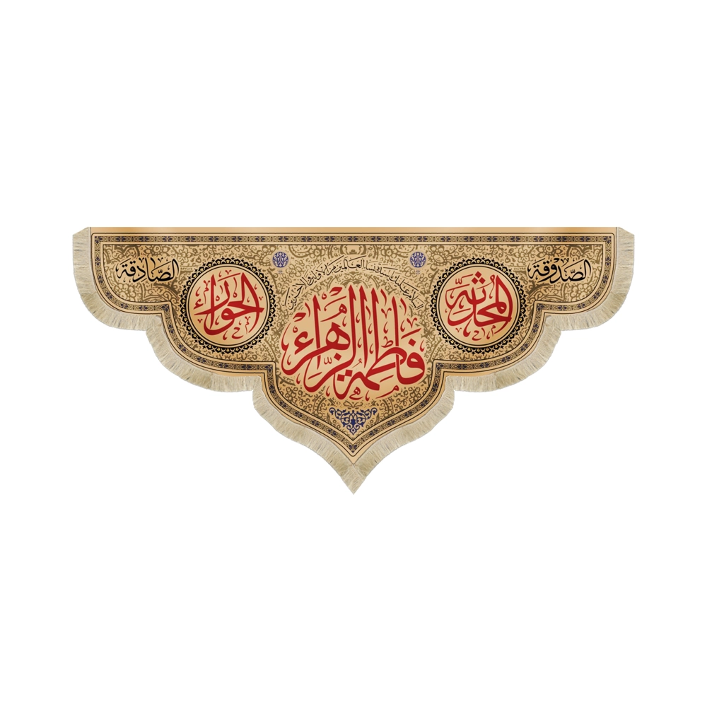 این کتیبه با طراحی خاص و معنوی، فضایی روحانی و آرامشبخش ایجاد میکند و نشاندهنده عشق و ارادت به حضرت فاطمه و اهل بیت (علیهم السلام) است.