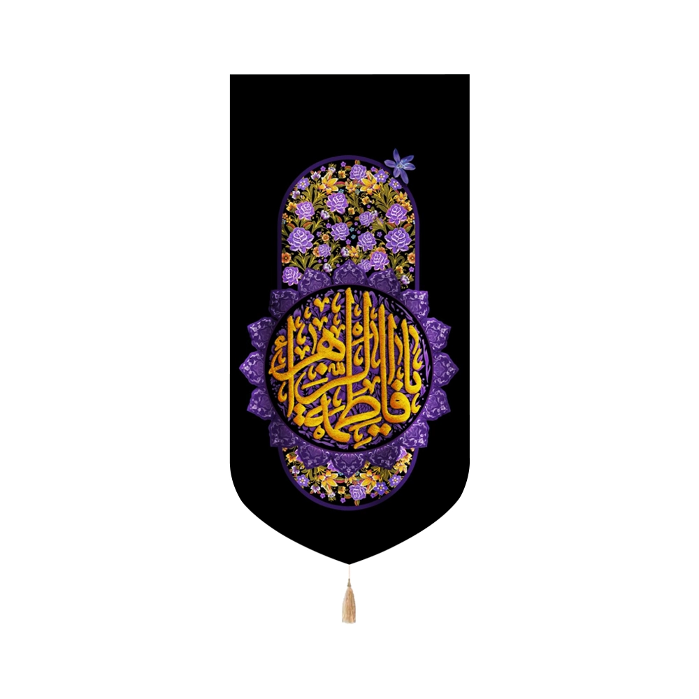 کتیبه فاطمیه مخمل یا فاطمه الزهرا گل بنفش عمودی