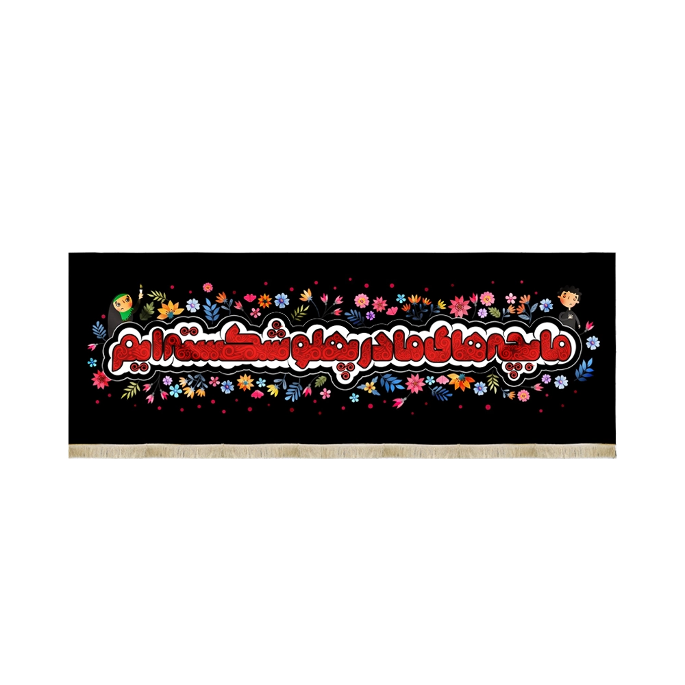کتیبه فاطمیه کودک مخمل با شعار ما بچه های مادر پهلو شکسته ایم