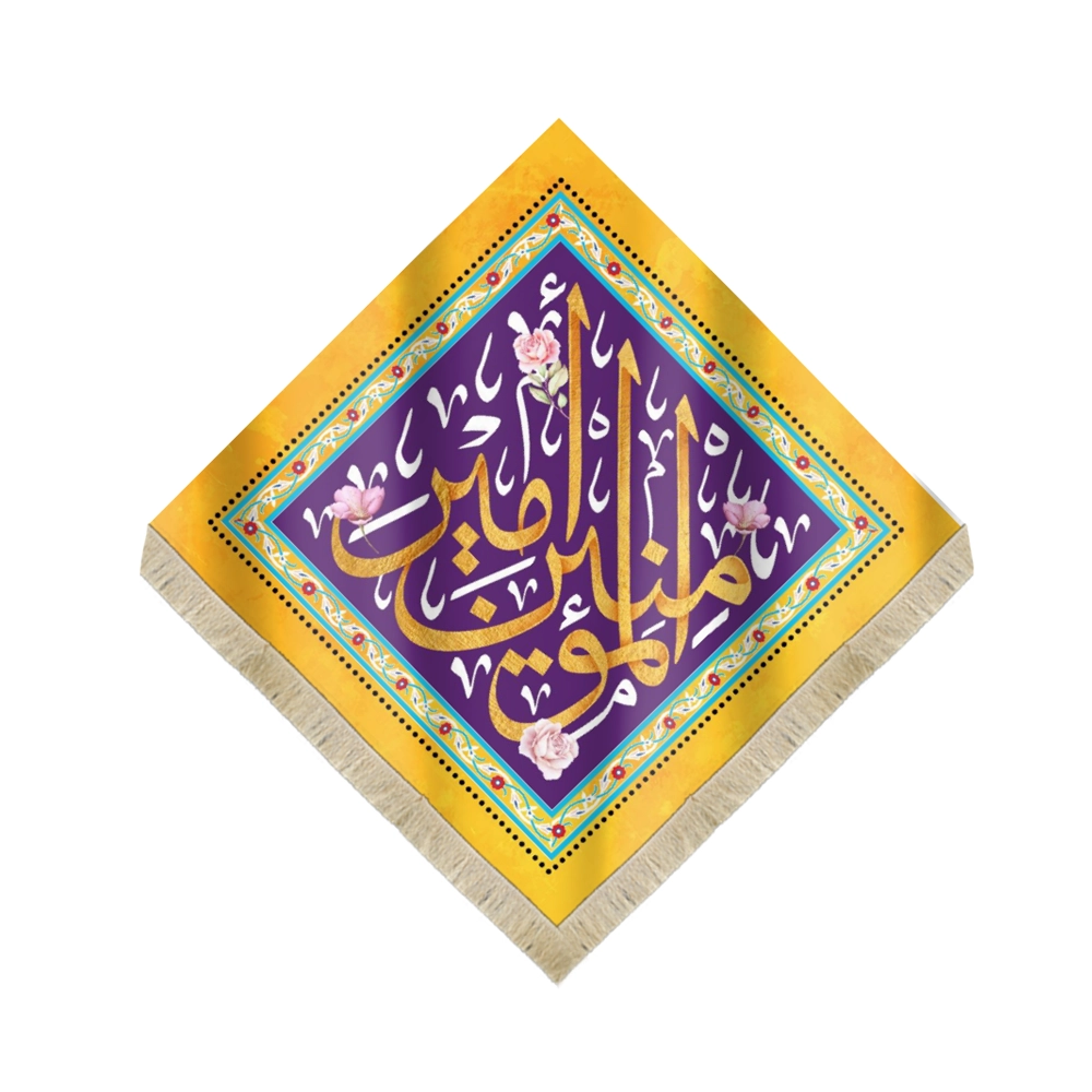 کتیبه لوزی مخمل امیرالمومنین زمینه زرد و بنفش