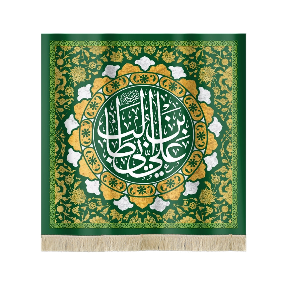 کتیبه مربعی مخمل علی بن ابی طالب زمینه سبز