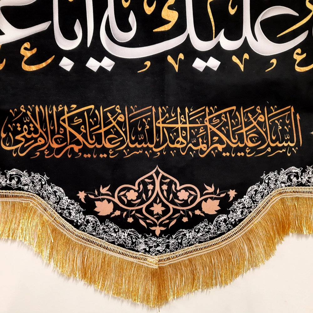 این کتیبه زیبا و منحصر به فرد با عنوان “السلام علیک یا اباعبدالله” با الهام از مفاهیم مذهبی عمیق طراحی شده است. جنس این کتیبه از پارچه مخمل با کیفیت بالا بوده و دارای ابعاد مختلفی است که آن را به انتخابی مناسب برای نصب در مجالس مذهبی، مساجد، حسینیهها و منازل میکند.