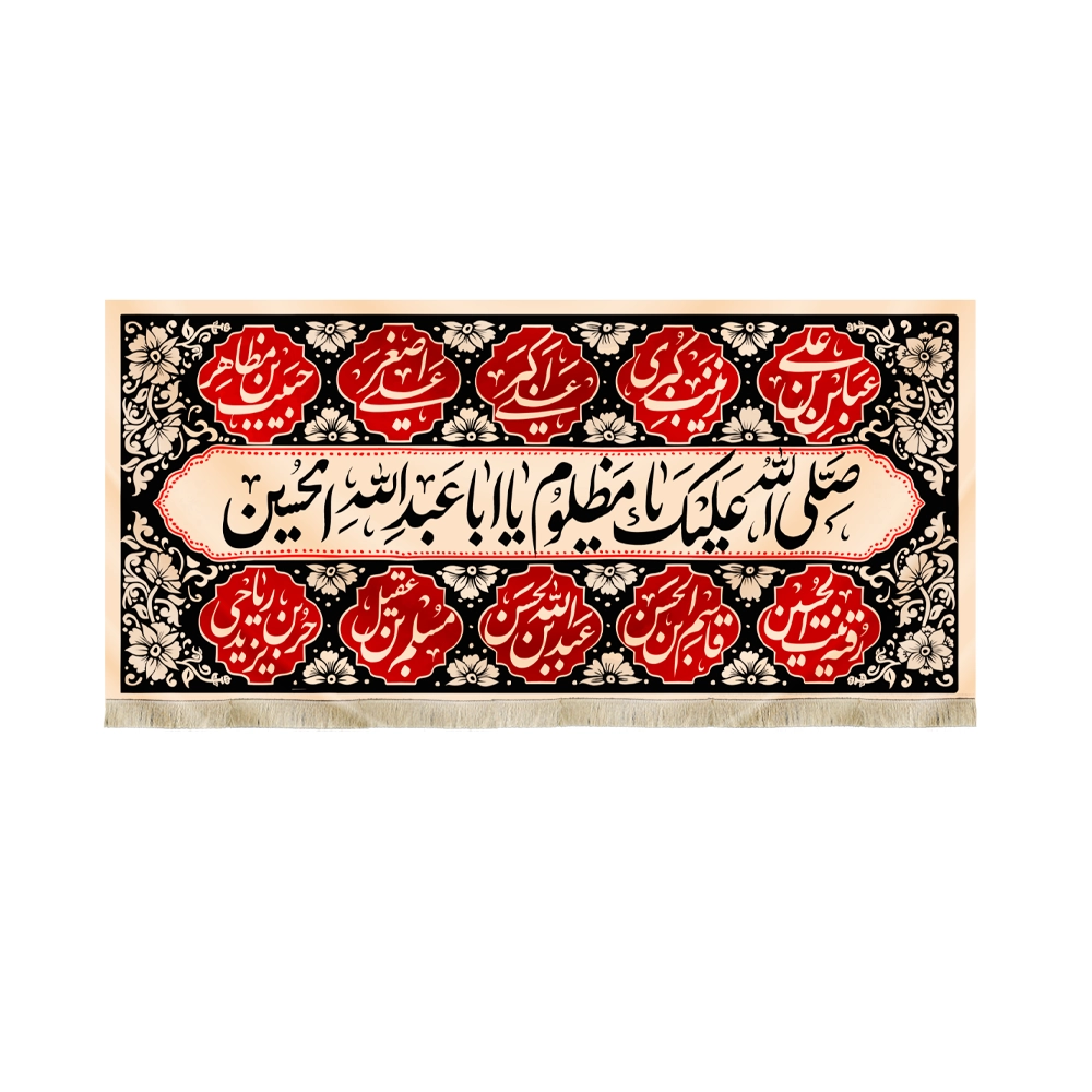 این کتیبه زیبا و منحصر به فرد با عنوان “السلام علیک یا مظلوم یا اباعبدالله الحسین” با الهام از مفاهیم مذهبی عمیق طراحی شده است. جنس این کتیبه از پارچه مخمل با کیفیت بالا بوده و دارای ابعاد مختلفی است که آن را به انتخابی مناسب برای نصب در مجالس مذهبی، مساجد، حسینیه‌ها و منازل می‌کند.