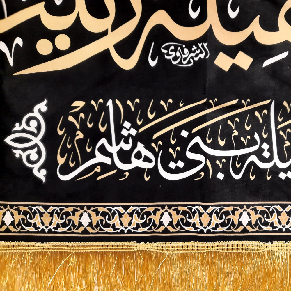 • جنس با کیفیت: کتیبه از پارچه مخمل با کیفیت بالا تهیه شده است که علاوه بر دوام و مقاومت در برابر سایش، به آن زیبایی و لطافت خاصی می‌بخشد.