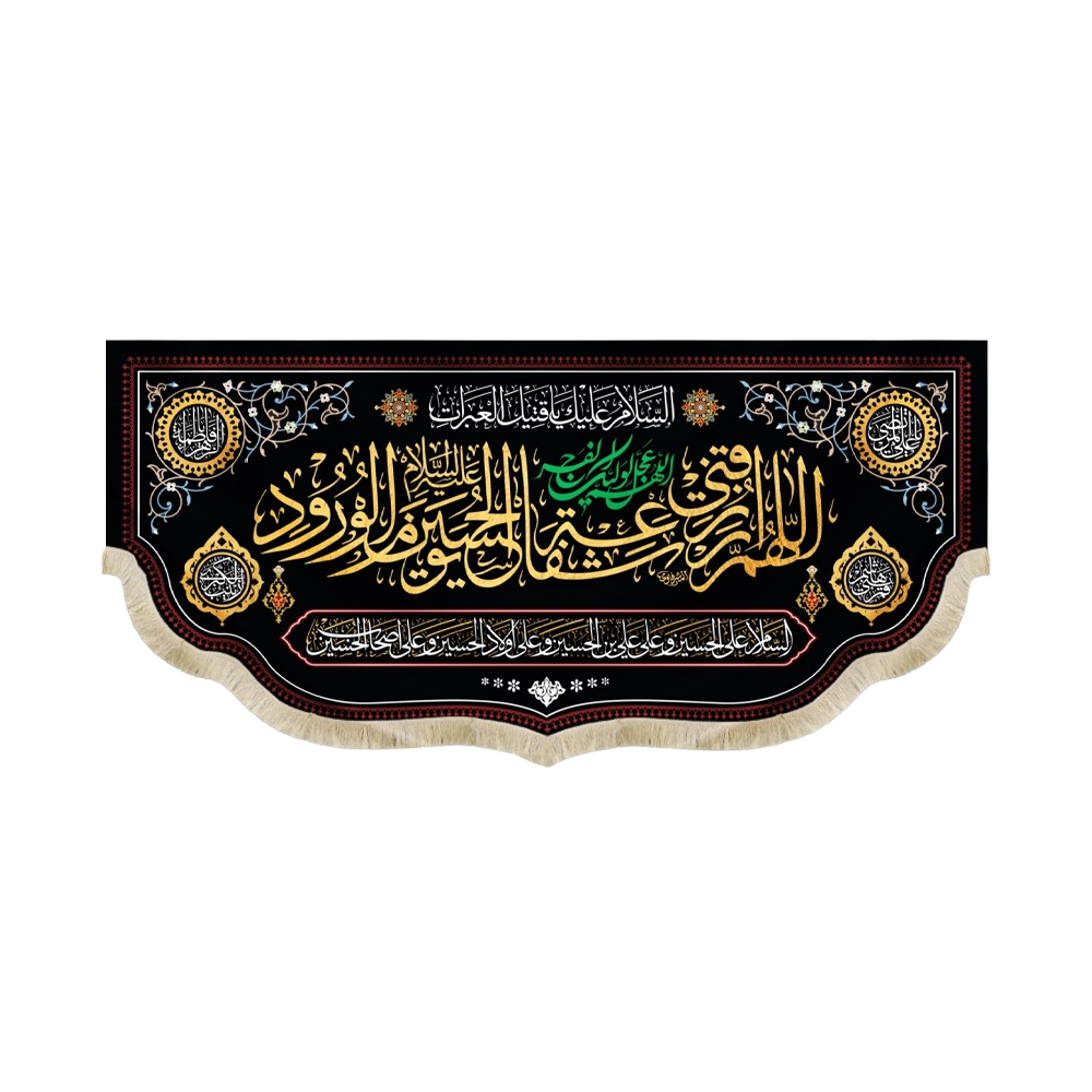 این کتیبه زیبا و منحصر به فرد با عنوان “اللهم ارزقنی شفاعه الحسین یوم الورود” با الهام از مفاهیم مذهبی عمیق طراحی شده است. جنس این کتیبه از پارچه مخمل با کیفیت بالا بوده و دارای ابعاد مختلفی است که آن را به انتخابی مناسب برای نصب در مجالس مذهبی، مساجد، حسینیهها و منازل میکند.