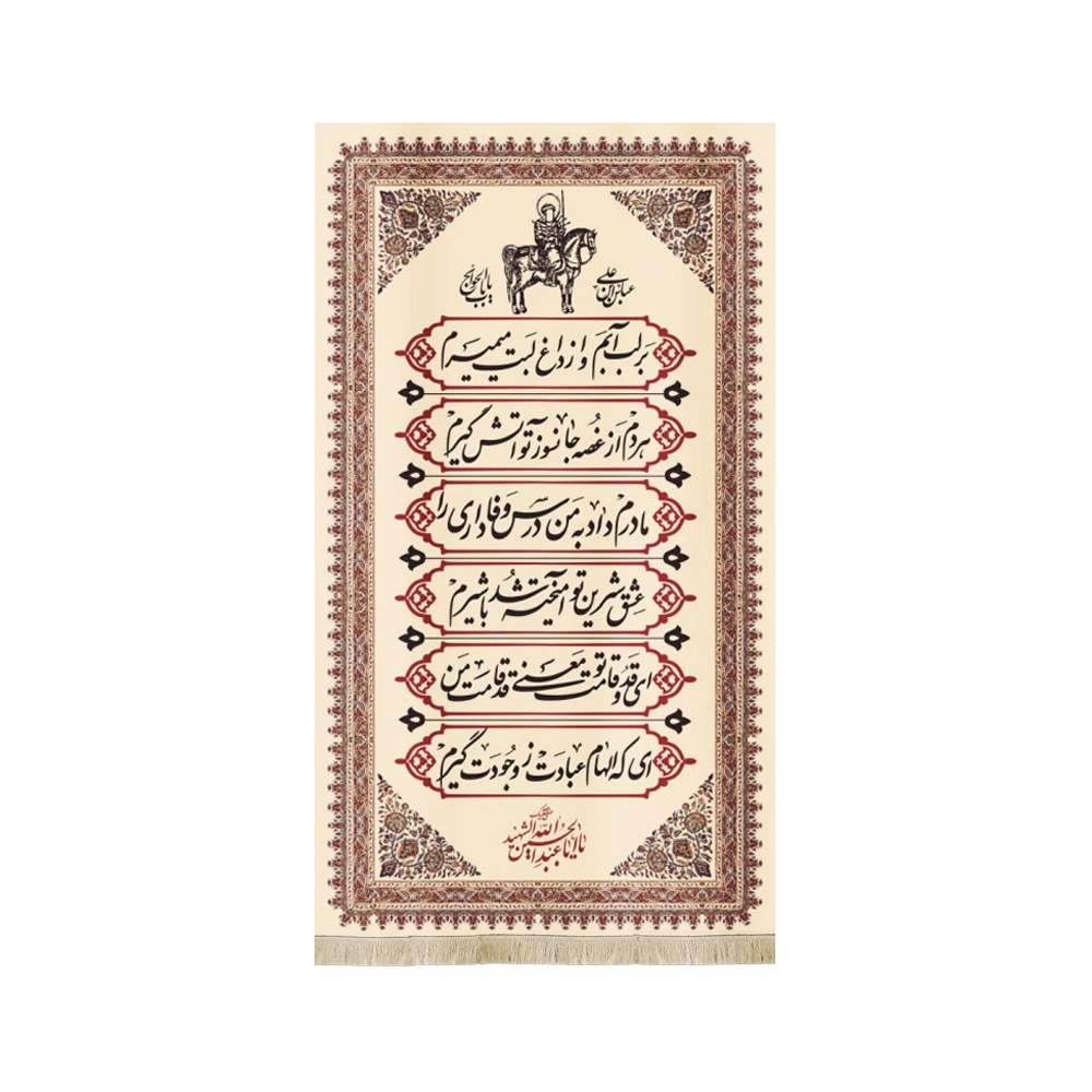 • جنس با کیفیت: کتیبه از پارچه مخمل با کیفیت بالا تهیه شده است که علاوه بر دوام و مقاومت در برابر سایش، به آن زیبایی و لطافت خاصی می‌بخشد.