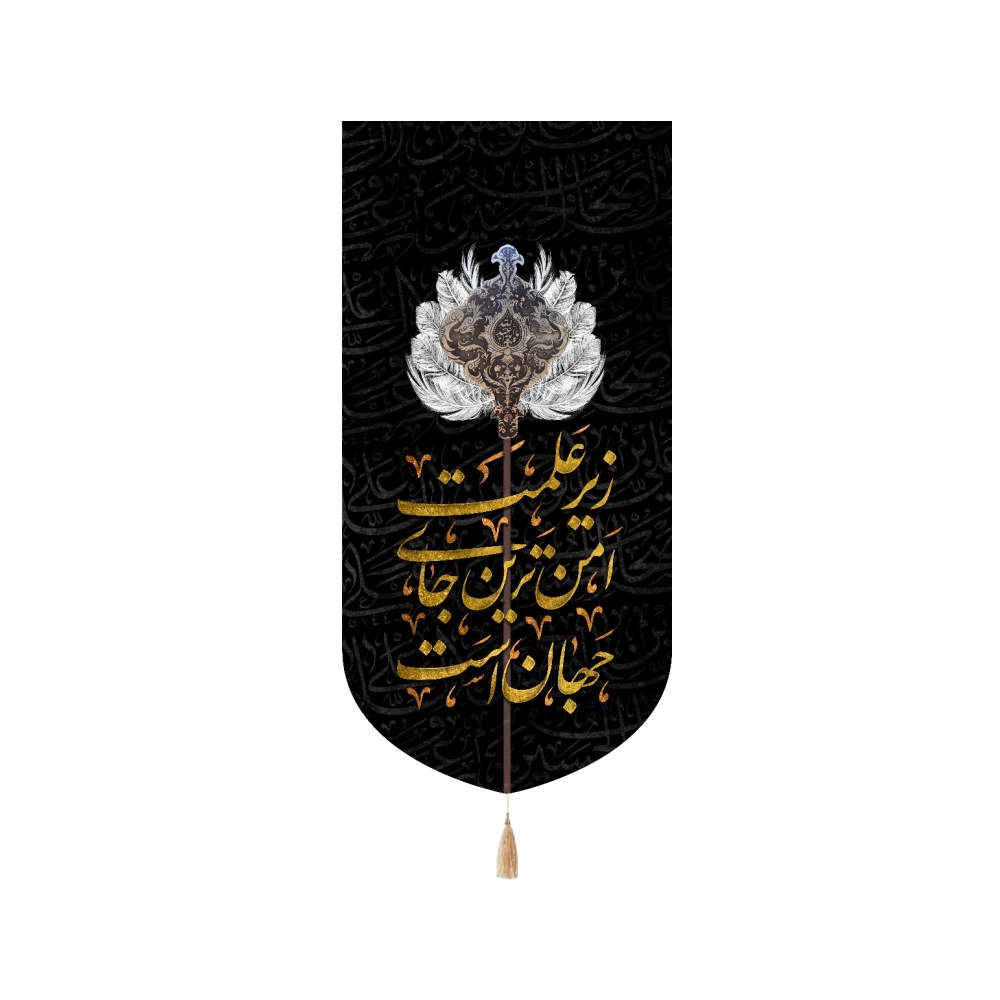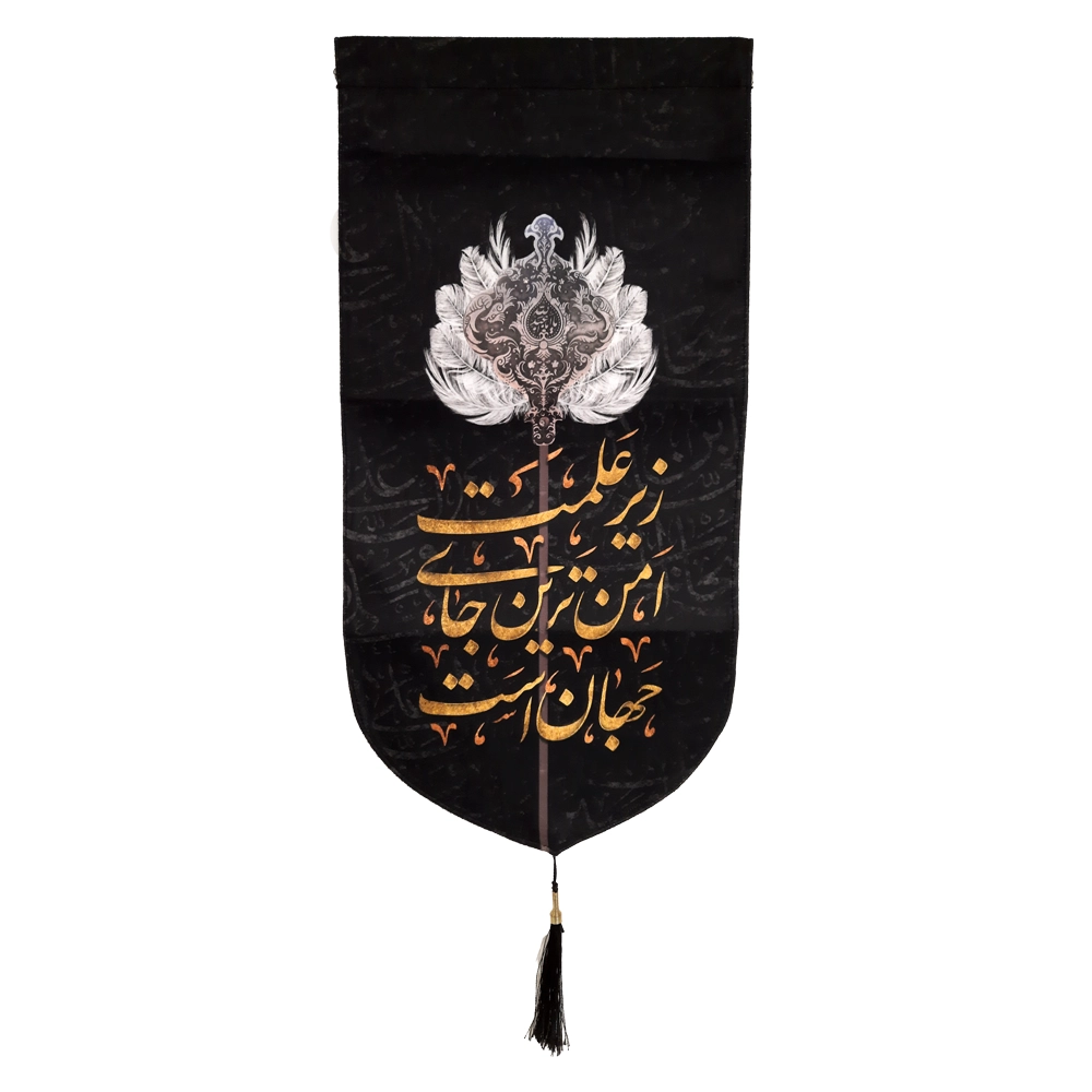 این کتیبه زیبا و منحصر به فرد با عنوان “زیر علمت امن ترین جای جهان است” با الهام از مفاهیم مذهبی عمیق طراحی شده است. جنس این کتیبه از پارچه مخمل با کیفیت بالا بوده و دارای ابعاد مختلفی است که آن را به انتخابی مناسب برای نصب در مجالس مذهبی، مساجد، حسینیهها و منازل میکند.