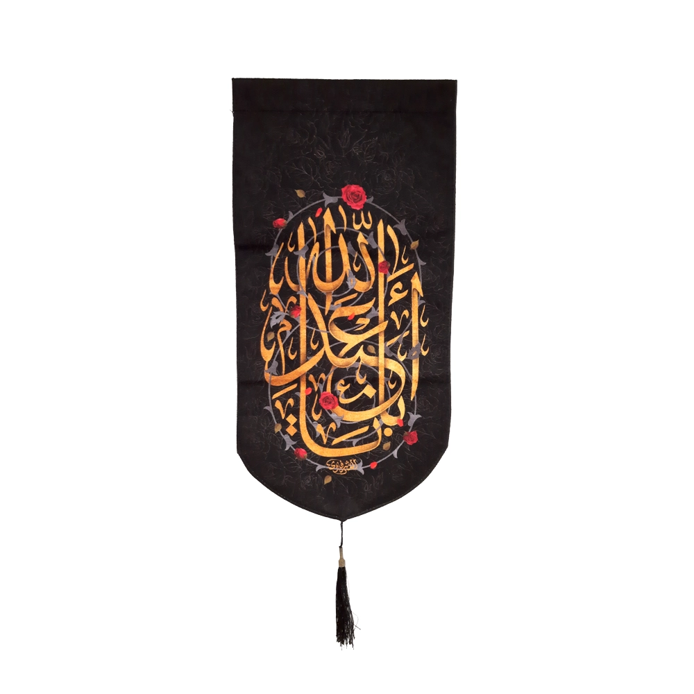 این کتیبه زیبا و منحصر به فرد با عنوان “یا اباعبدالله” با الهام از مفاهیم مذهبی عمیق طراحی شده است. جنس این کتیبه از پارچه مخمل با کیفیت بالا بوده و دارای ابعاد مختلفی است که آن را به انتخابی مناسب برای نصب در مجالس مذهبی، مساجد، حسینیه‌ها و منازل می‌کند.