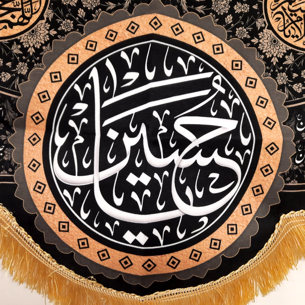 کاربردهای متنوع: این کتیبه مذهبی میتواند در مجالس و مراسم عزاداری، هیئتها، مساجد، حسینیهها، و حتی منازل مورد استفاده قرار گیرد. نصب این کتیبه به عنوان نمادی از ارادت و عشق به امام حسین (علیه السلام)، فضای معنوی و روحانی خاصی به محیط میبخشد.
