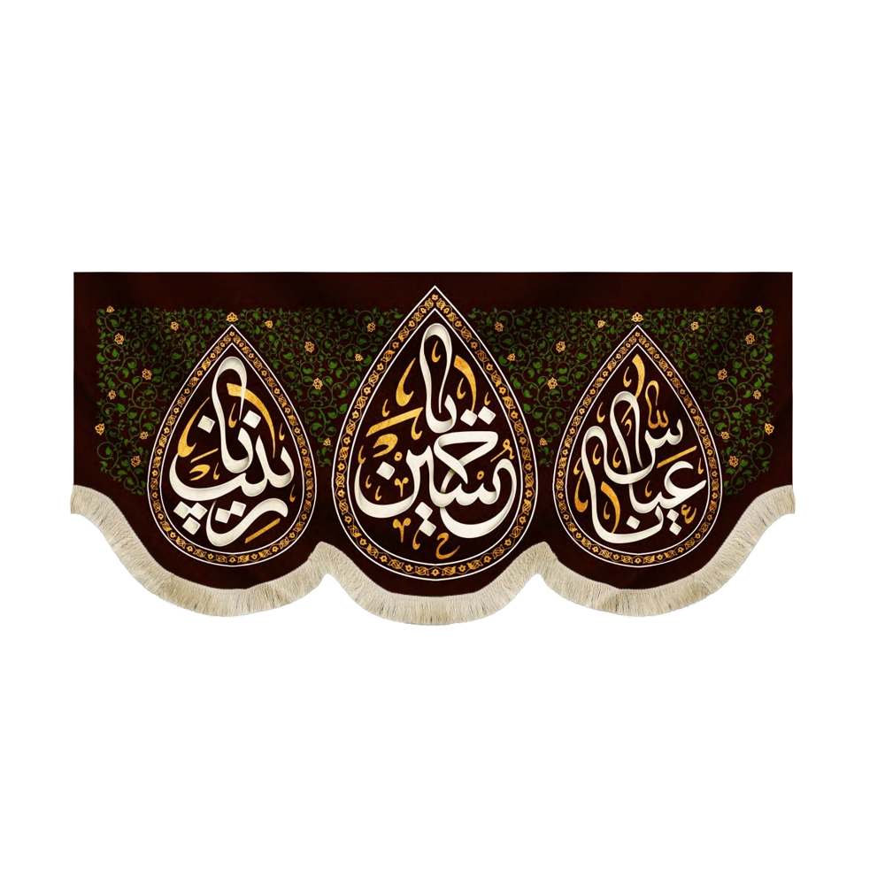در سمت راست کتیبه “یا عباس“ و در سمت چپ “یا زینب“ طراحی و چاپ شده است.