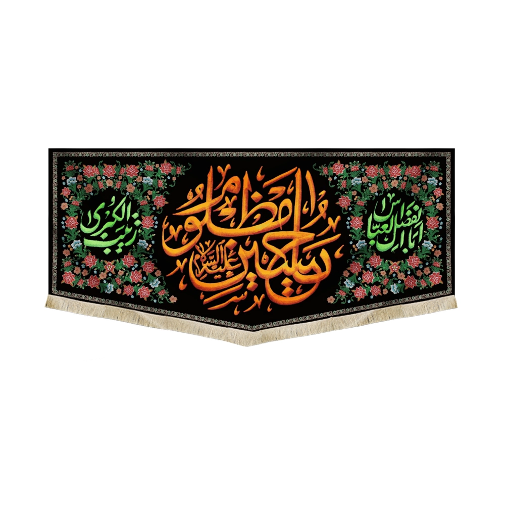 در سمت راست کتیبه “اباالفضل العباس” و در سمت چپ کتیبه “زینب الکبری طراحی و چاپ شده است.