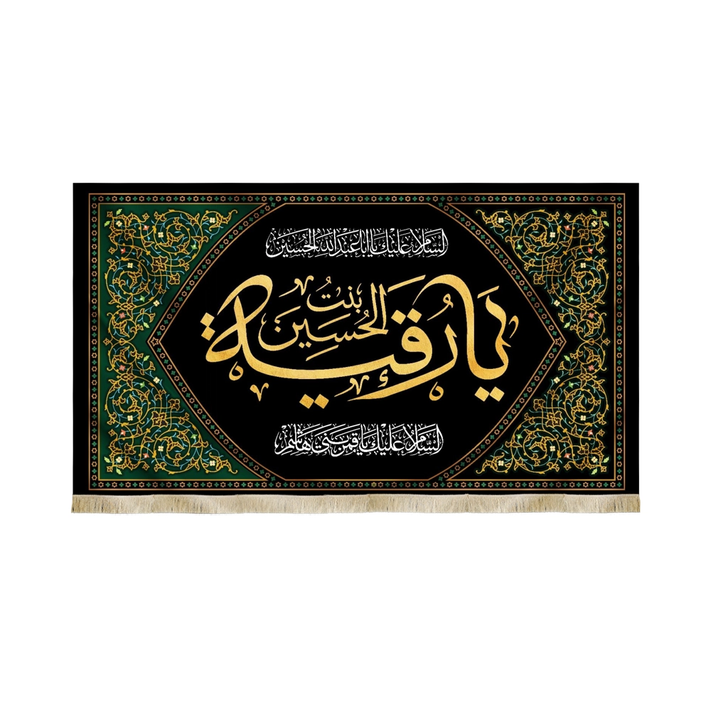 این کتیبه زیبا و منحصر به فرد با عنوان “یا رقیه بنت الحسین” با الهام از مفاهیم مذهبی عمیق طراحی شده است. جنس این کتیبه از پارچه مخمل با کیفیت بالا بوده و دارای ابعاد مختلفی است که آن را به انتخابی مناسب برای نصب در مجالس مذهبی، مساجد، حسینیهها و منازل میکند.