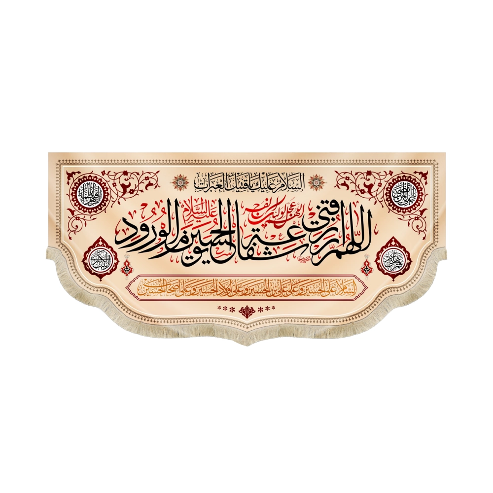 این کتیبه زیبا و منحصر به فرد با عنوان “اللهم ارزقنی شفاعه الحسین یوم الورود رنگ کرم” با الهام از مفاهیم مذهبی عمیق طراحی شده است. جنس این کتیبه از پارچه مخمل با کیفیت بالا بوده و دارای ابعاد مختلفی است که آن را به انتخابی مناسب برای نصب در مجالس مذهبی، مساجد، حسینیهها و منازل میکند.
