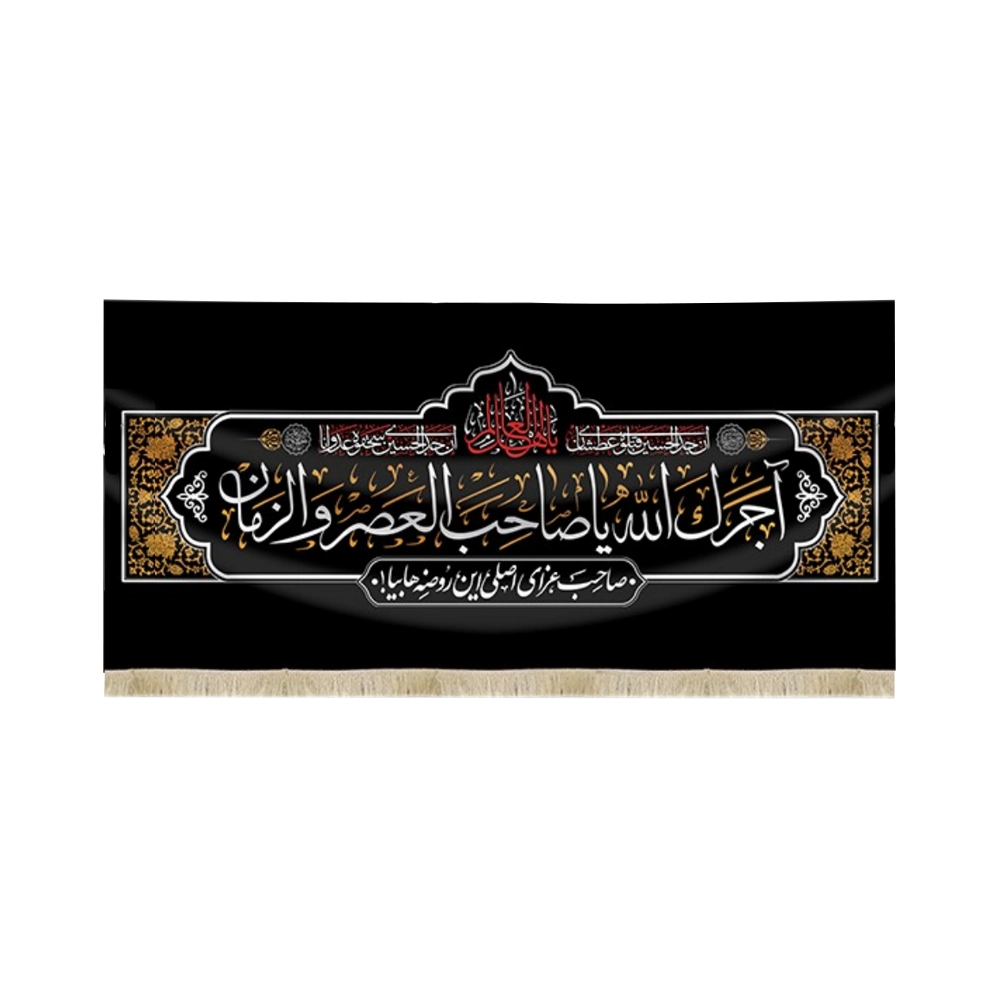 کتیبه مخمل با شعار آجرک الله یا صاحب العصر و الزمان صاحب عزای اصلی این روضه ها بیا