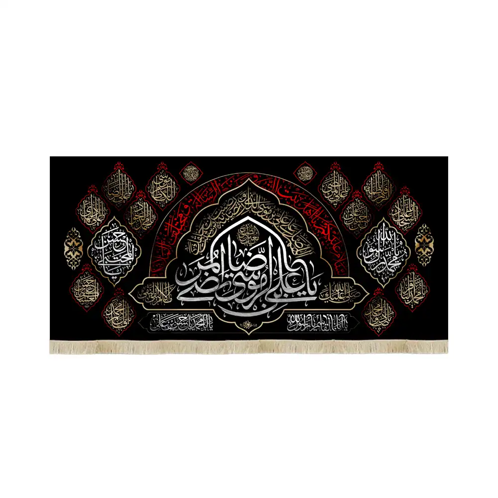 کتیبه مخمل افقی «یا علی ابن موسی‌الرضا» با طراحی خاص، نگارش برجسته و رنگ‌بندی عزاداری، یکی از فاخرترین محصولات سوگواری در فروشگاه فاران‌آرت است. این کتیبه نه فقط یک پارچه، بلکه یک تابلو بصری از ارادت، اشک و دلدادگی به ساحت امام هشتم در ایام شهادت است.