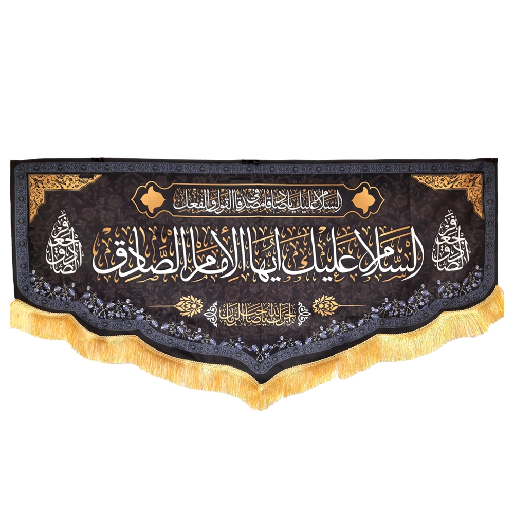 • کاربردهای متنوع: این کتیبه مذهبی می‌تواند در مجالس و مراسم عزاداری، هیئت‌ها، مساجد، حسینیه‌ها، و حتی منازل مورد استفاده قرار گیرد. نصب این کتیبه به عنوان نمادی از ارادت و عشق به امام صادق (علیه السلام)، فضای معنوی و روحانی خاصی به محیط می‌بخشد.