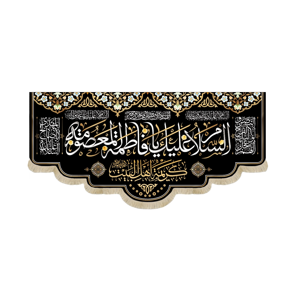 این کتیبه زیبا و منحصر به فرد با عنوان “السلام علیک یا فاطمه المعصومه زمینه مشکی” با الهام از مفاهیم مذهبی عمیق طراحی شده است. جنس این کتیبه از پارچه مخمل با کیفیت بالا بوده و دارای ابعاد مختلفی است که آن را به انتخابی مناسب برای نصب در مجالس مذهبی، مساجد، حسینیه‌ها و منازل می‌کند.