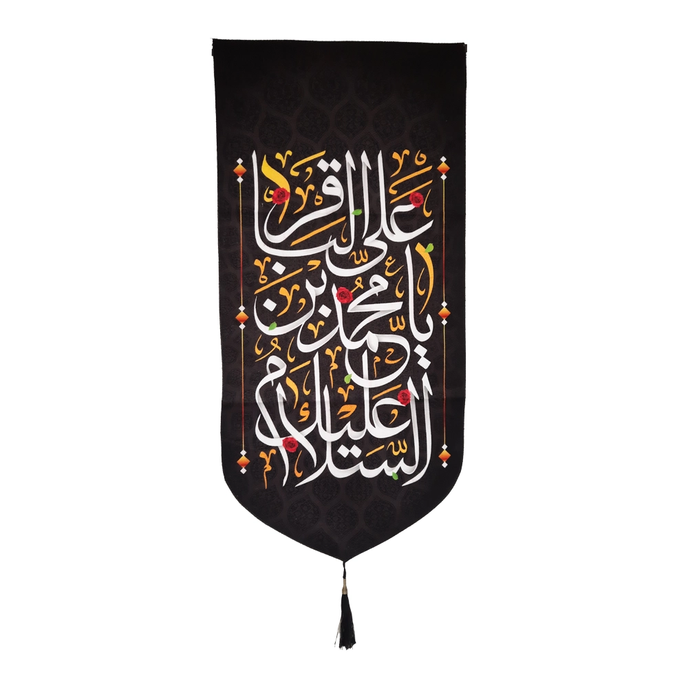 کتیبه مخمل السلام علیک یا محمد بن علی الباقر متن سفید اعراب طلایی عمودی تک عددی کد 52011