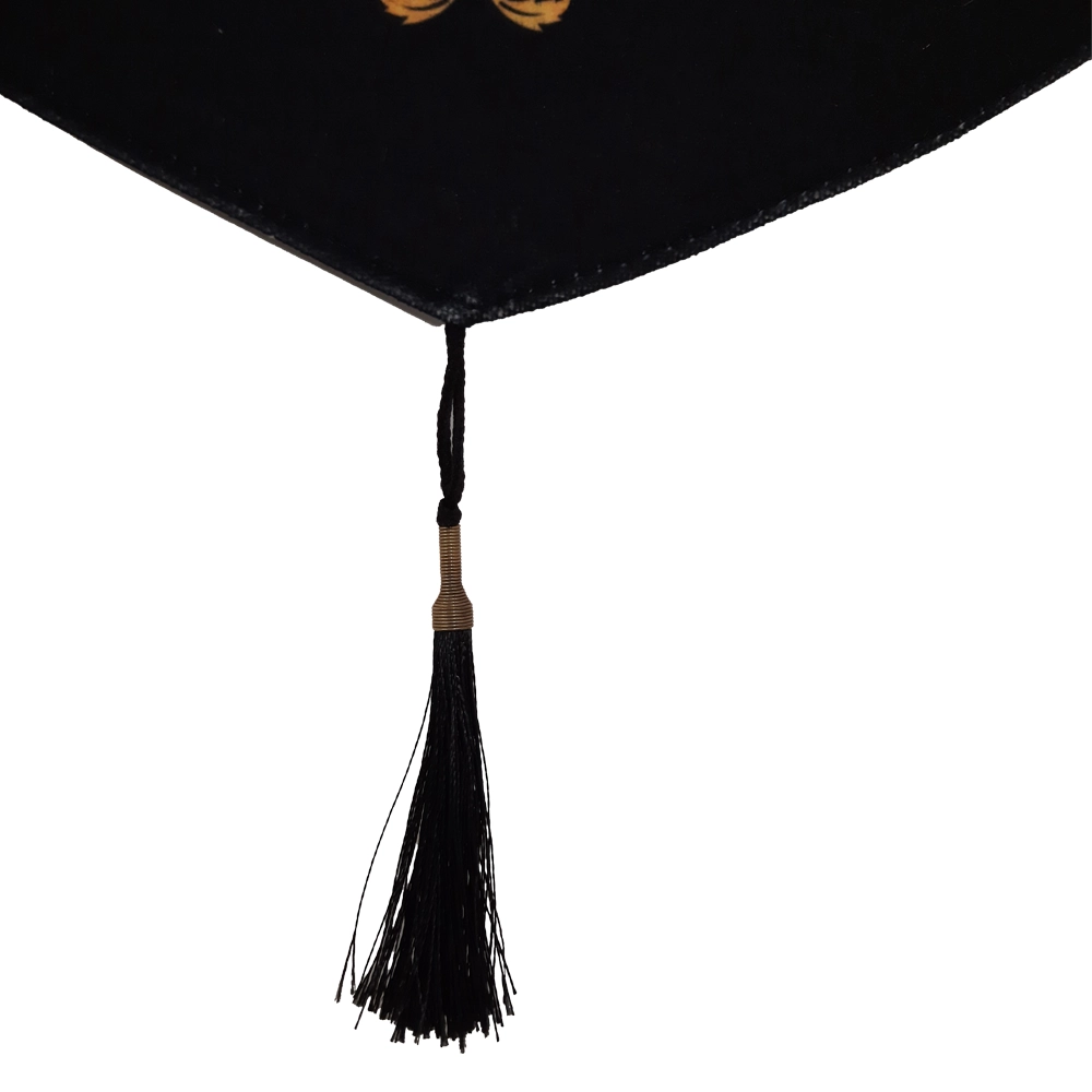 طراحی هنری: این کتیبه دارای خطاطی زیبا و با شکوهی است که بر روی آن نقش بسته است. متن “اشهد ان محمد رسول الله” با استفاده از بهترین تکنیکهای خطاطی اسلامی، به شکلی برجسته و دلنشین روی پارچه مخمل نوشته شده است.