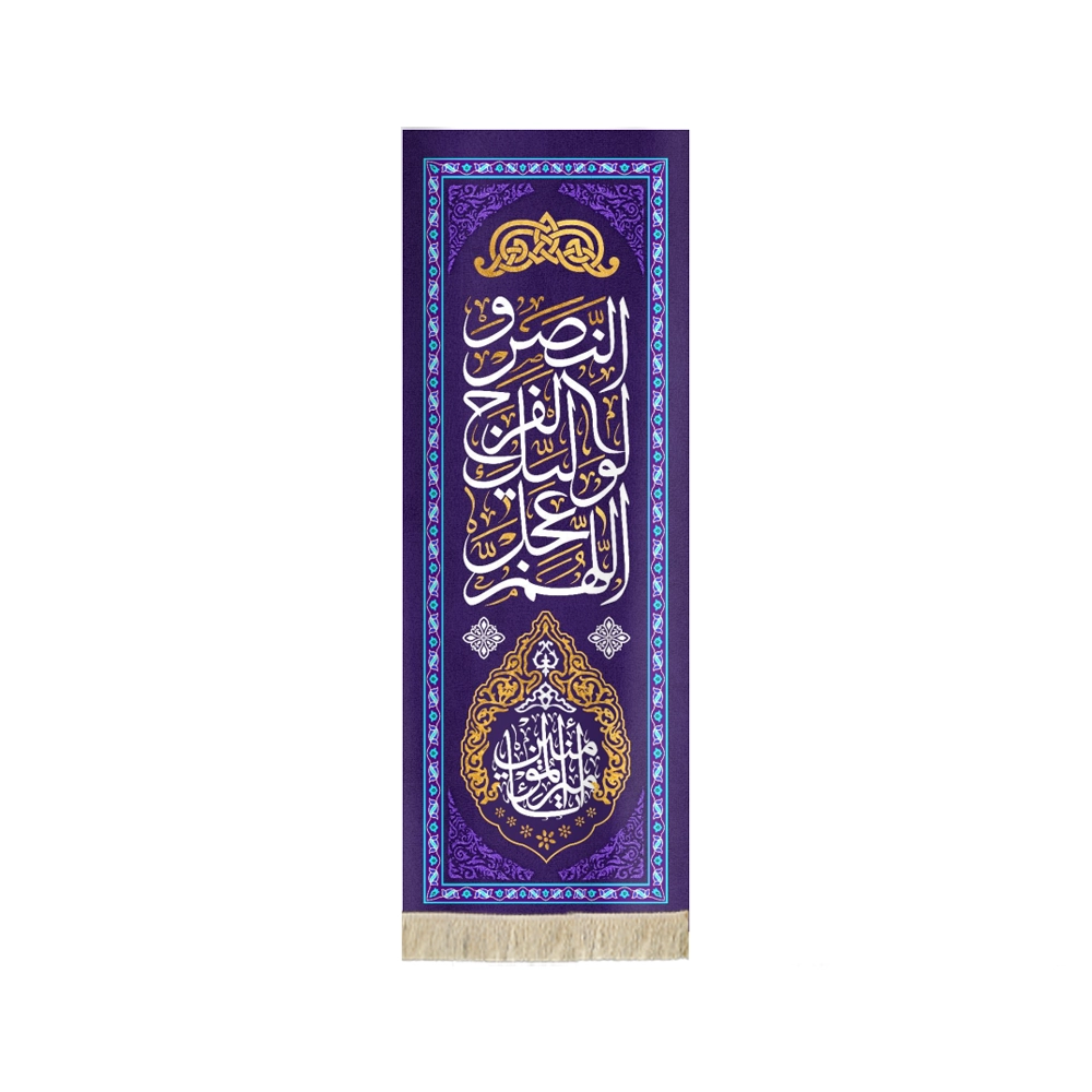 کتیبه مخمل با شعار اللهم عجل لولیک الفرج و النصر یا امیر المومنین زمینه بنفش