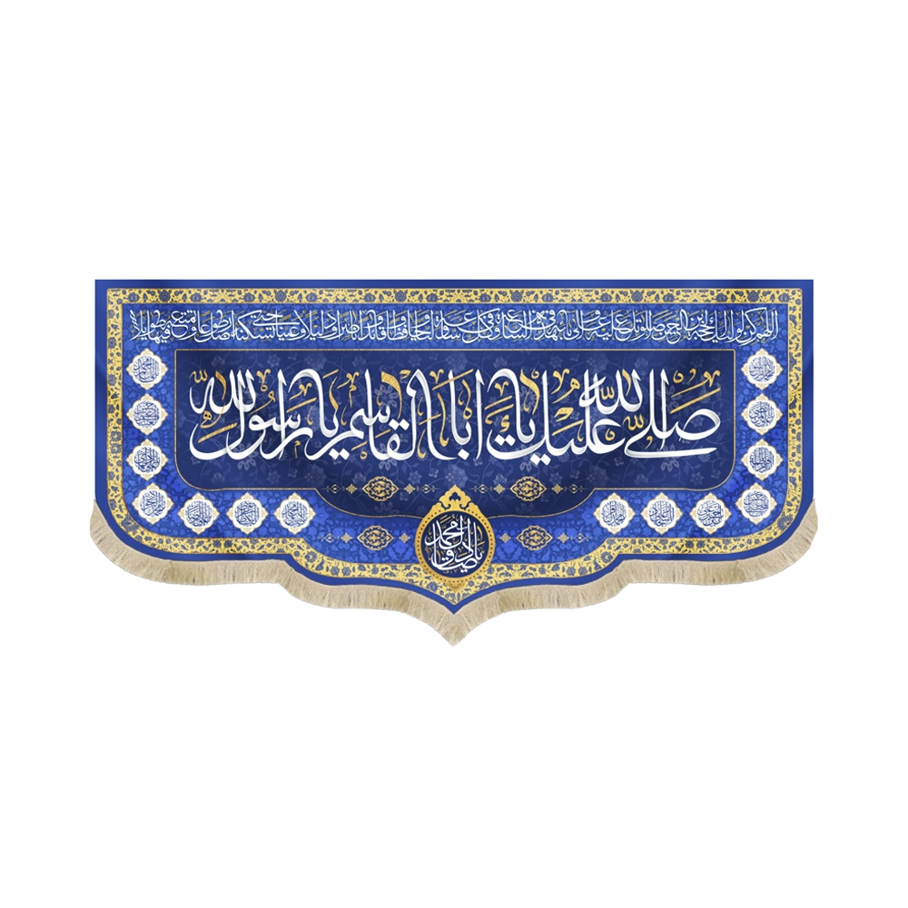 کتیبه مذهبی “صلی الله علیک یا اباالقاسم یا رسول الله زمینه آبی“