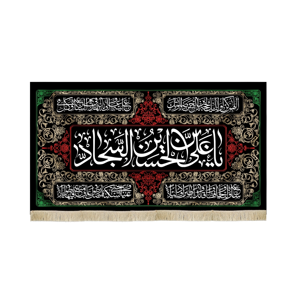 کاربردهای متنوع: این کتیبه مذهبی میتواند در مجالس و مراسم عزاداری، هیئتها، مساجد، حسینیهها، و حتی منازل مورد استفاده قرار گیرد. نصب این کتیبه به عنوان نمادی از ارادت و عشق به امام سجاد (علیه السلام)، فضای معنوی و روحانی خاصی به محیط میبخشد.
