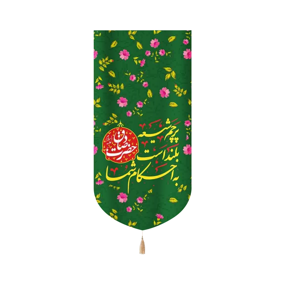 کتیبه مذهبی “پرچم شیعه بلند است به احکام شما حضرت صادق علیه السلام”