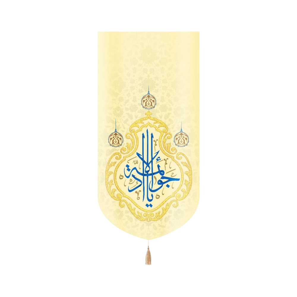 کتیبه مخمل با شعار یا جواد الائمه زمینه زرد روشن عمودی تک عددی کد 52089