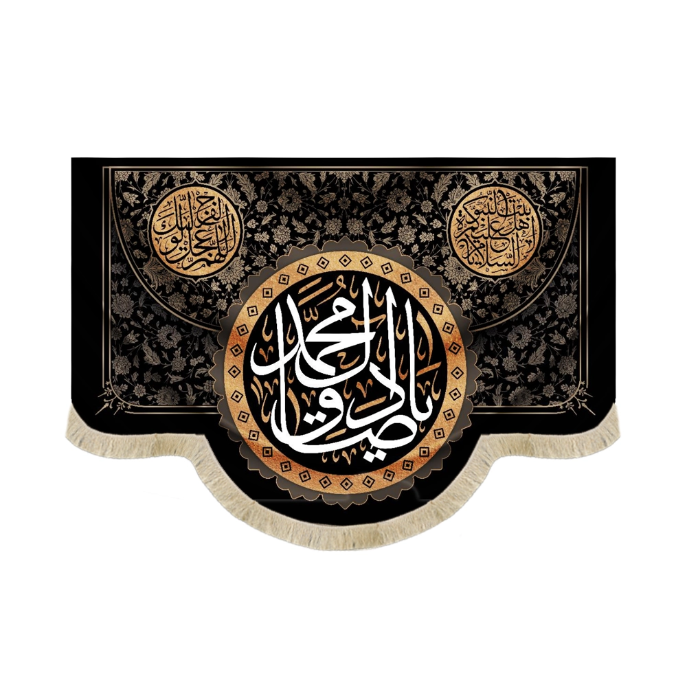 • کاربردهای متنوع: این کتیبه مذهبی می‌تواند در مجالس و مراسم عزاداری، هیئت‌ها، مساجد، حسینیه‌ها، و حتی منازل مورد استفاده قرار گیرد. نصب این کتیبه به عنوان نمادی از ارادت و عشق به امام صادق (علیه السلام)، فضای معنوی و روحانی خاصی به محیط می‌بخشد.