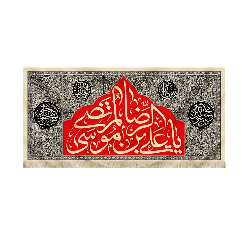 کاربردهای متنوع: این کتیبه مذهبی میتواند در مجالس و مراسم عزاداری، هیئتها، مساجد، حسینیهها، و حتی منازل مورد استفاده قرار گیرد. نصب این کتیبه به عنوان نمادی از ارادت و عشق به امام رضا (علیه السلام)، فضای معنوی و روحانی خاصی به محیط میبخشد.