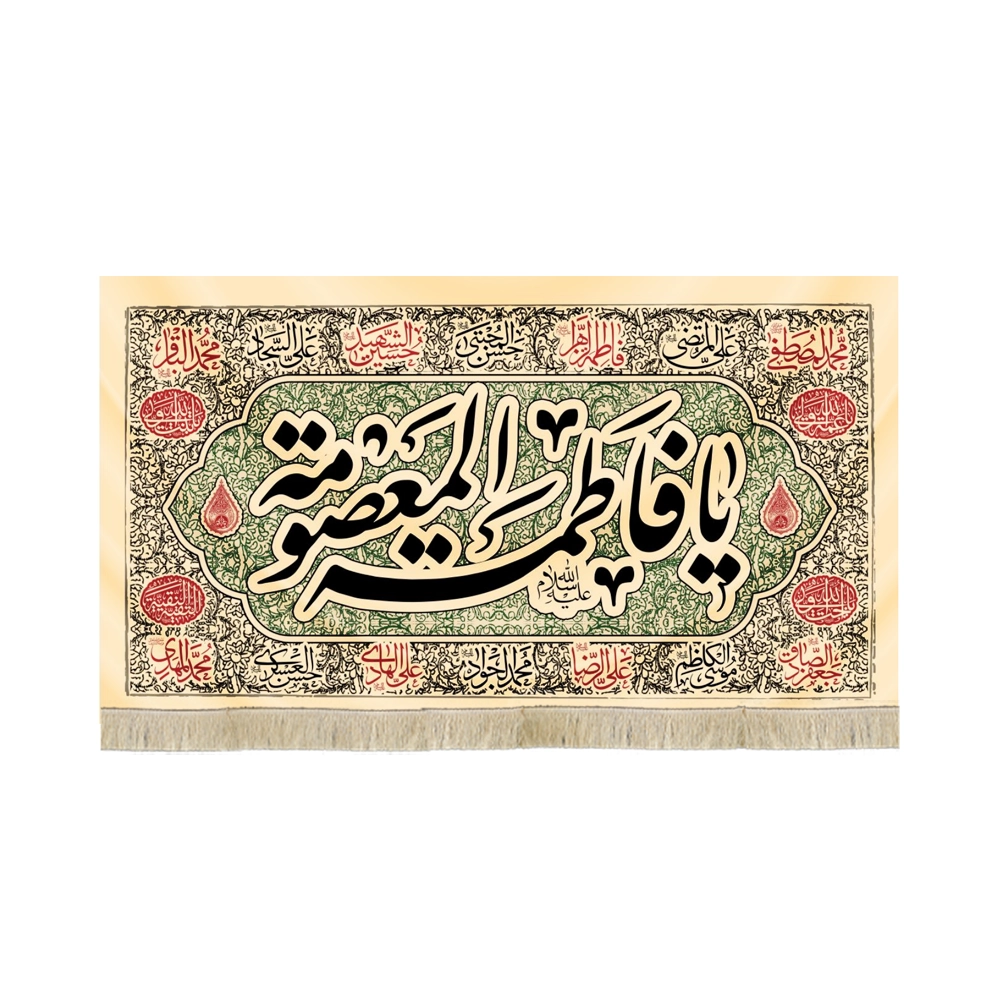 کتیبه مذهبی “یا فاطمه المعصومه علیه السلام متن مشکی زمینه کرم“