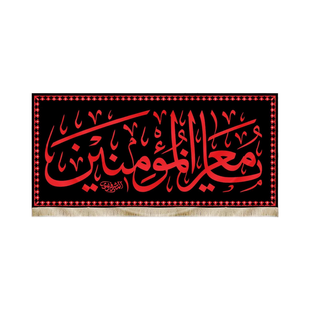• طراحی هنری: متن “یا معز المومنین” با استفاده از بهترین تکنیک‌های خطاطی اسلامی، به شکلی برجسته و دل‌نشین روی پارچه مخمل نوشته شده است.