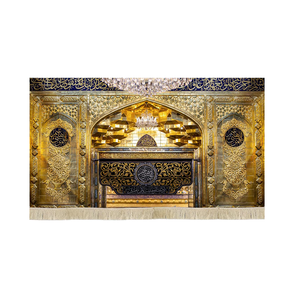 کتیبه مخمل تصویری سر در ورودی حرم حضرت عباس یا قمر بنی هاشم